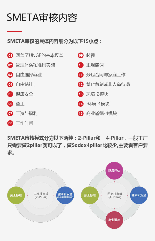 Sedex是一家全球性的会员组织,旨在帮助企业在负责任商业中去繁存简,管理其劳工权利、健康与安全、环境和商业道德方面的绩效,SMETA是Sedex的审核方法,也是全球三大社会责任审核方法之一,其审核模式分为二模块和四模块 。